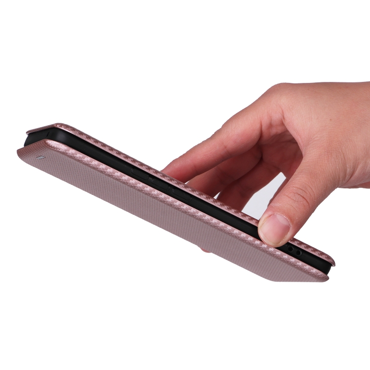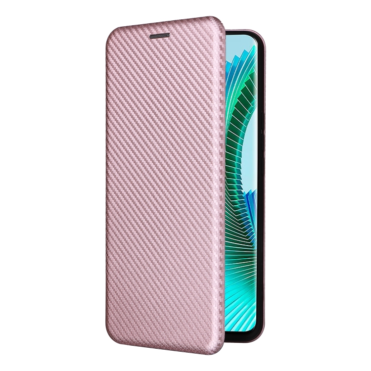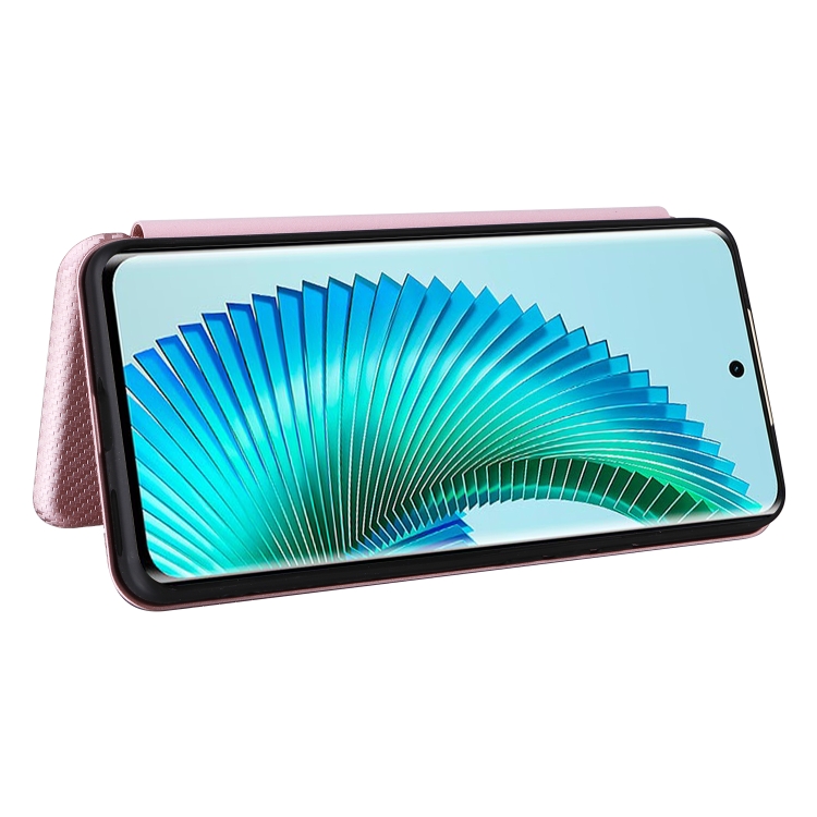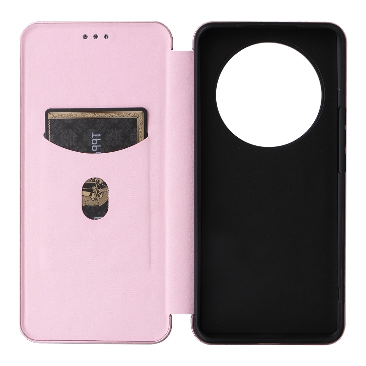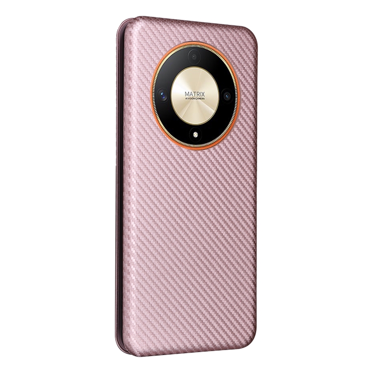 Funda para Honor Magic6 Lite de Cuero con Tapa y Textura de Fibra de Carbono (Rosa)