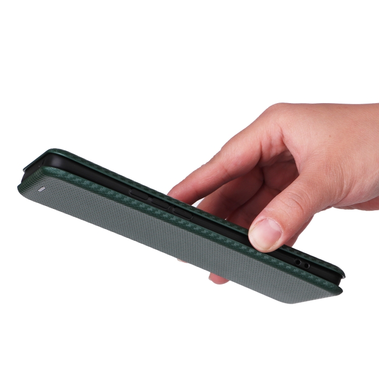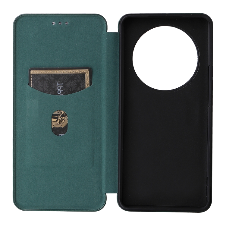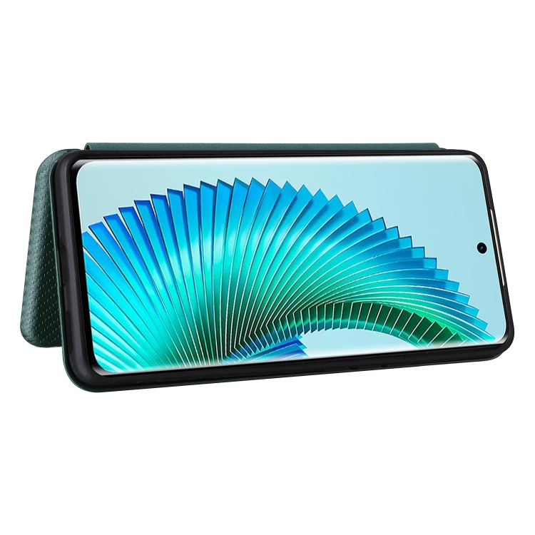 Funda para Honor Magic6 Lite de Cuero con Tapa y Textura de Fibra de Carbono (Verde)