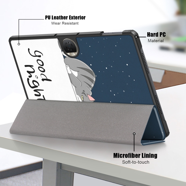 - 1x Funda para Honor Pad 9 de Cuero pintada con 3 pliegues (Gato Perezoso)