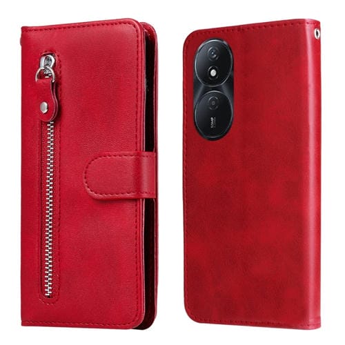Funda para Honor Play 50 Plus de Cuero con Cremallera y Textura de Becerro (Rojo)
