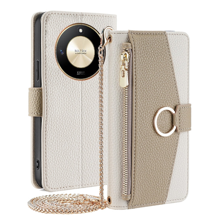 Estuche Cruzado para Honor X50 5G de Cuero con Textura Litchi (Blanco)