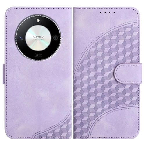 Funda de Cuero para Honor X50 Yx0060 con Relieve y Cabeza de Elefante con Cordón (Púrpura Claro)