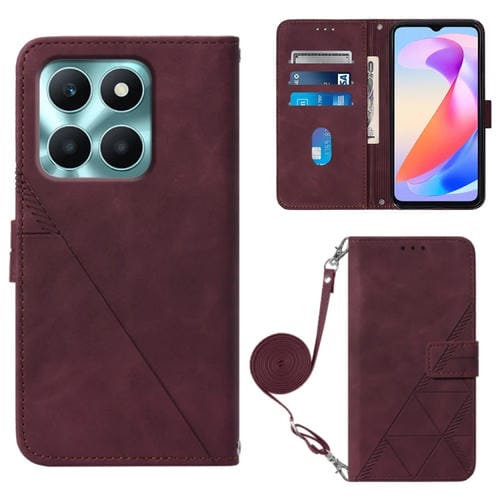 Funda para Honor X6A Crossbody de Cuero con Tapa en Relieve 3D (Rojo Vino)