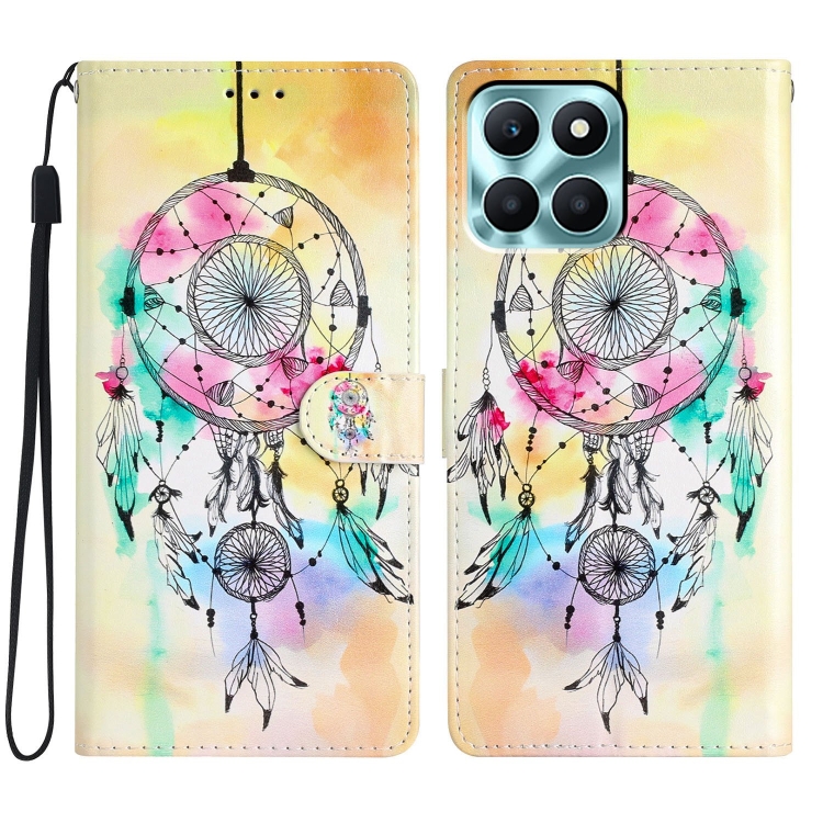 Funda de Cuero para Honor X6A con Dibujo Coloreado Atrapasueños