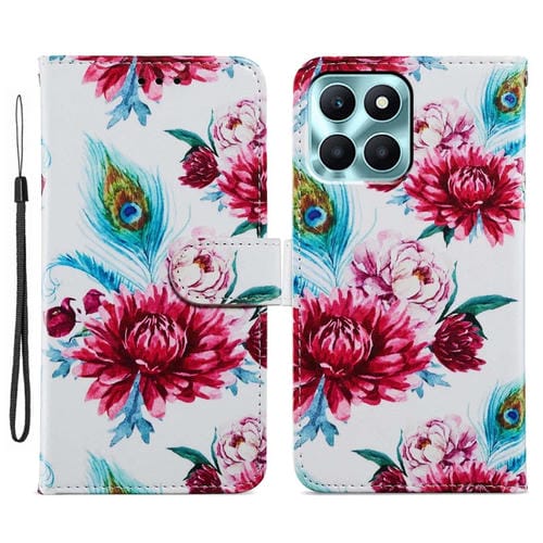Funda para Honor X6A de Cuero con Tapa Horizontal y Patrón Pintado (Flor de Pavo Real)