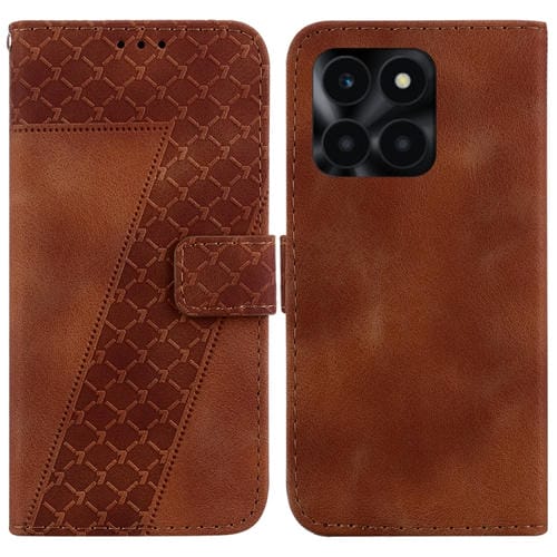 Funda para Teléfono Honor X6A Cuero En Relieve Forma de 7 (Marrón)