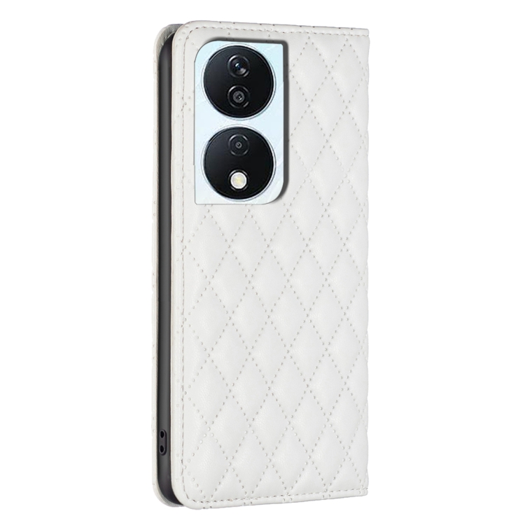 Funda para Honor X7B con Tapa de Cuero Magnético y Diseño Diamond Lattice (Blanco)