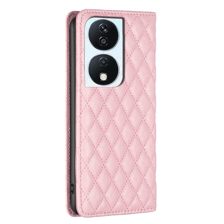 Funda para Honor X7B con Tapa de Cuero Magnético y Diseño Diamond Lattice (Rosa)