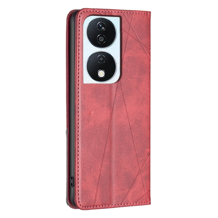 Funda de Cuero Magnético para Honor X7B con Textura de Rombo (Rojo)