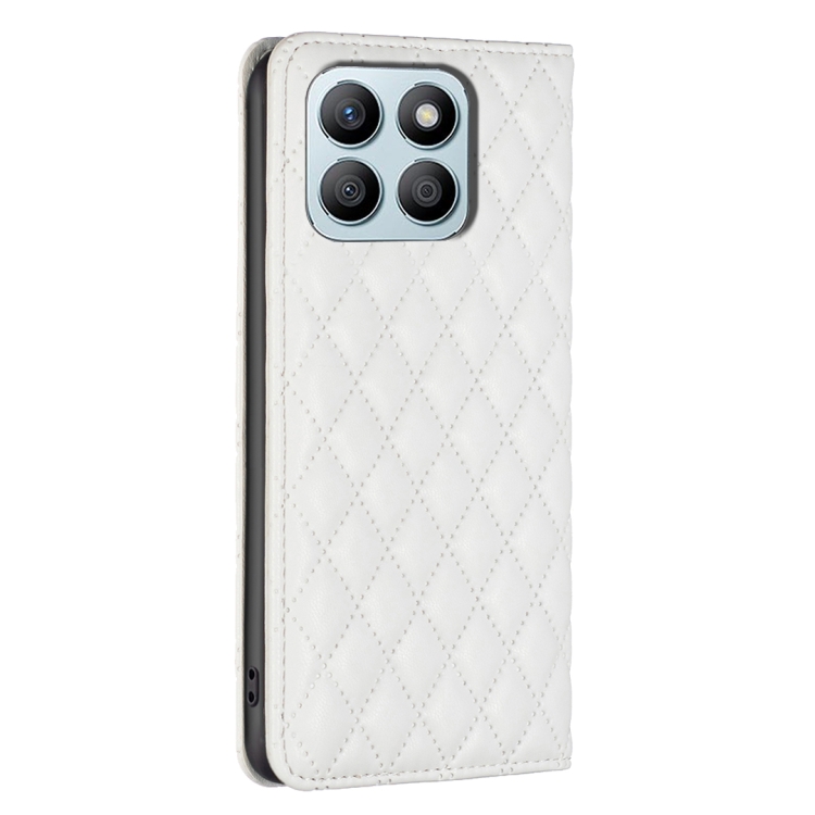 Funda para Honor X8B con Tapa de Cuero Magnético y Diseño Diamond Lattice (Blanco)