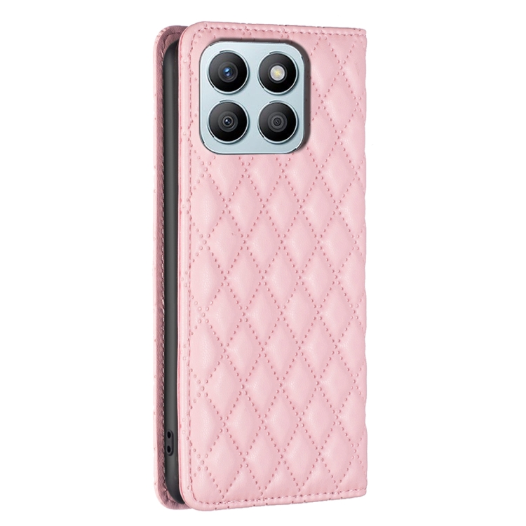 Funda para Honor X8B con Tapa de Cuero Magnético y Diseño Diamond Lattice (Rosa)