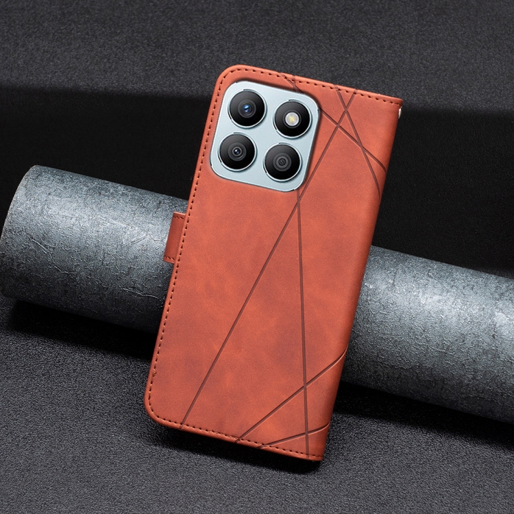 Funda para Honor X8B de Cuero con Textura de Rombo y Hebilla Magnética (Marrón)
