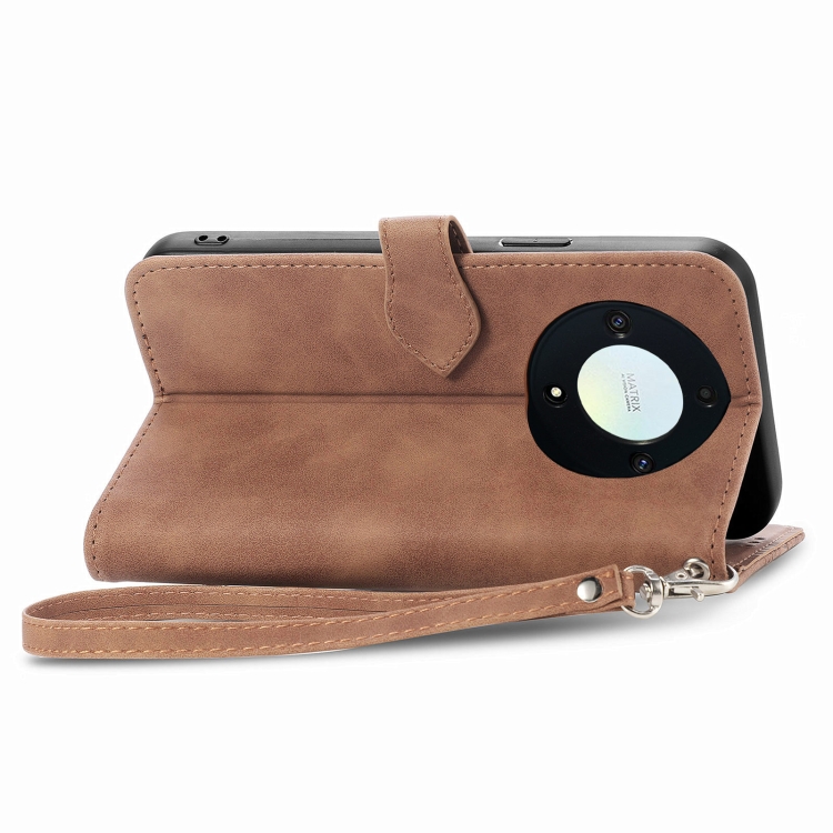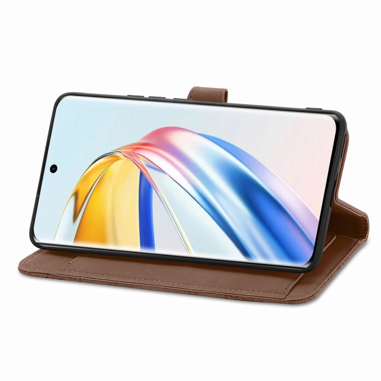 Funda de Cuero para Honor X9B con Cremallera y Flores en Relieve (Marrón)