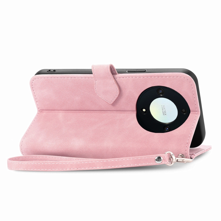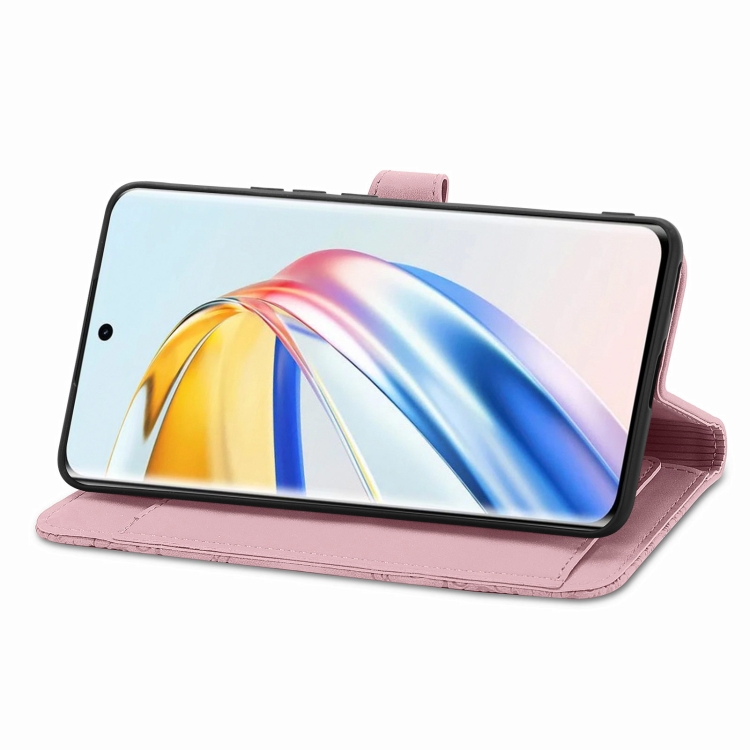 Funda de Cuero para Honor X9B con Cremallera y Flores en Relieve (Rosa)