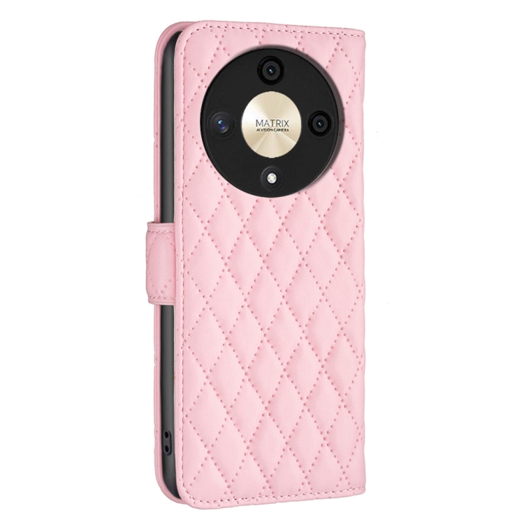 Funda de Cuero con Tapa para Honor X9B y Magic6 Lite 5G Diamond Lattice (Rosa)