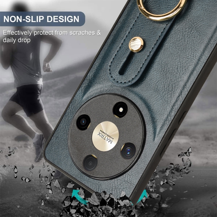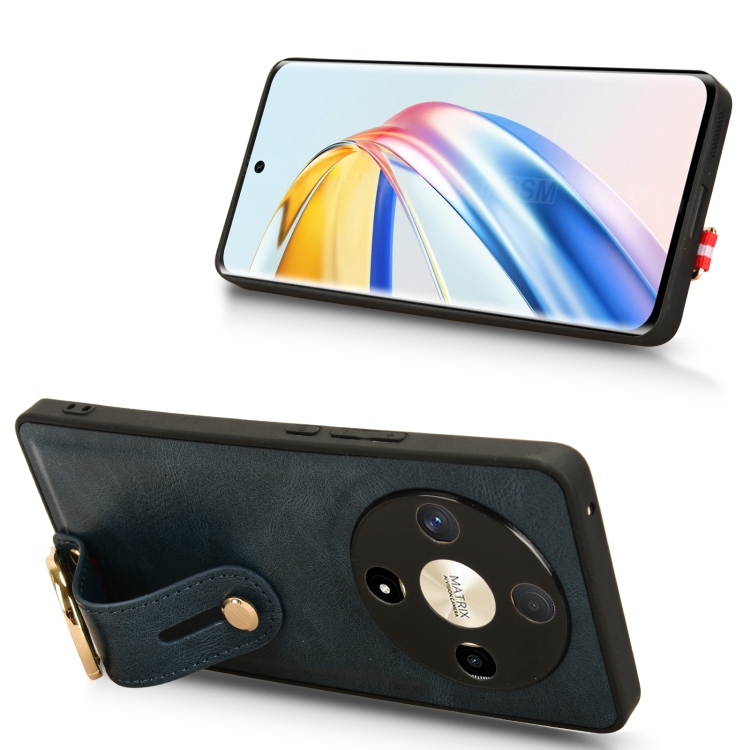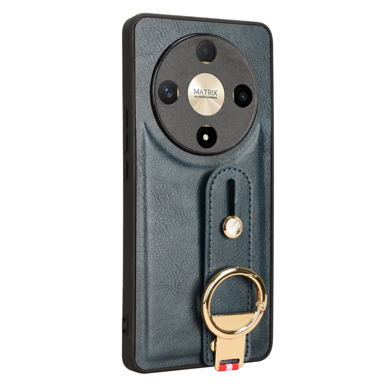 Funda Trasera de Cuero para Honor X9B y Magic6 Lite 5G con Pulsera (Azul)