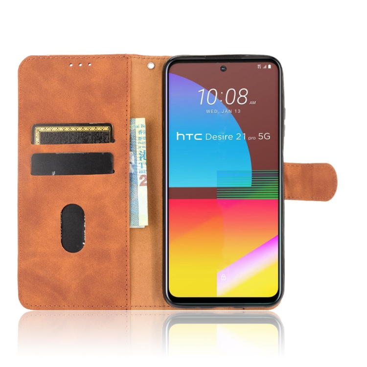 Funda de Cuero PU para HTC Desire 21 Pro 5G con Hebilla Magnética, Soporte y Billetera (Marrón)