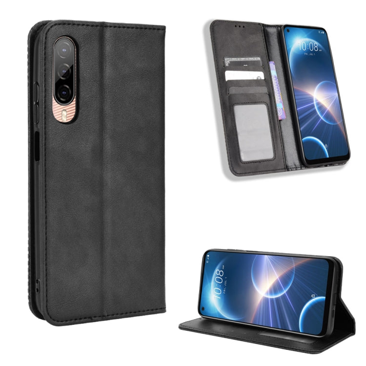 Funda de Cuero para HTC Desire 22 Pro con Hebilla Magnética y Textura Retro (Negro)