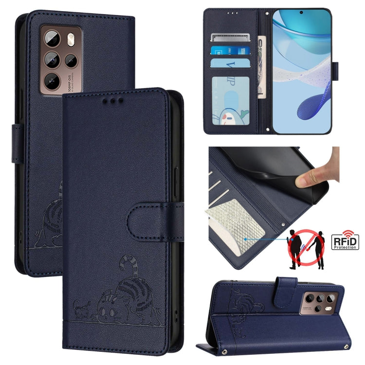 Estuche para Teléfono HTC U24 Pro CAT Rat Cuero Rfid con Patrón en Relieve y Cordón (Azul)