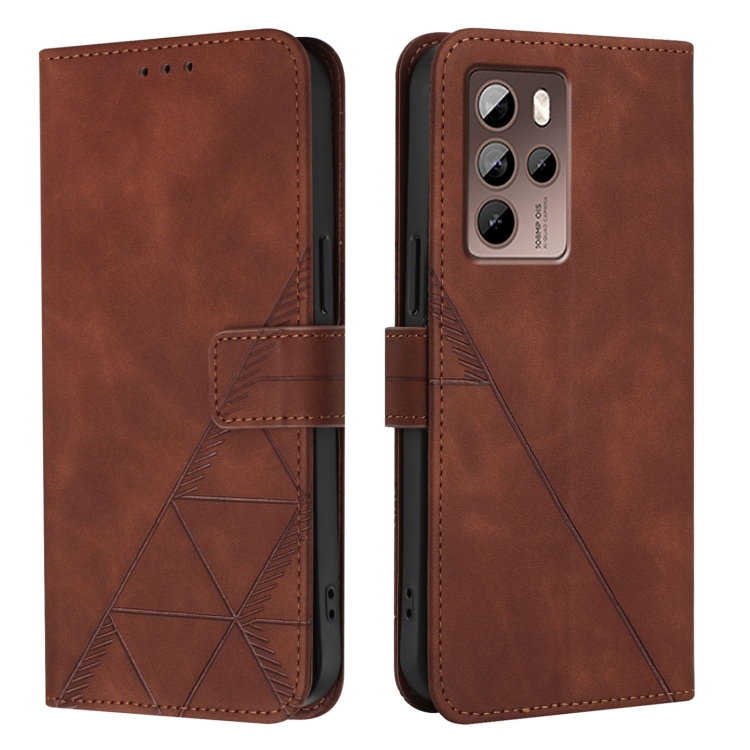 Funda de Cuero para HTC U24 Pro Crossbody con Tapa en Relieve 3D (Marrón)