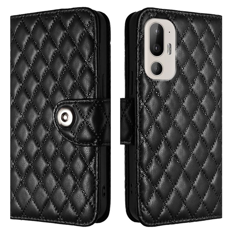 Funda de Cuero para HTC U24 Pro con Tapa, Textura Rombal y Cordón (Negro)