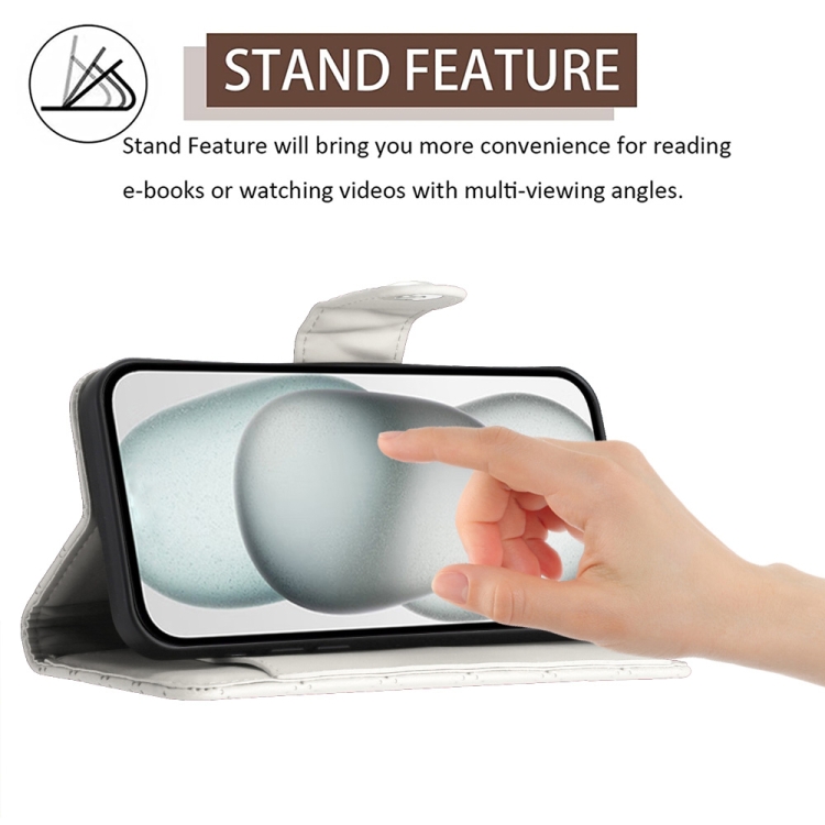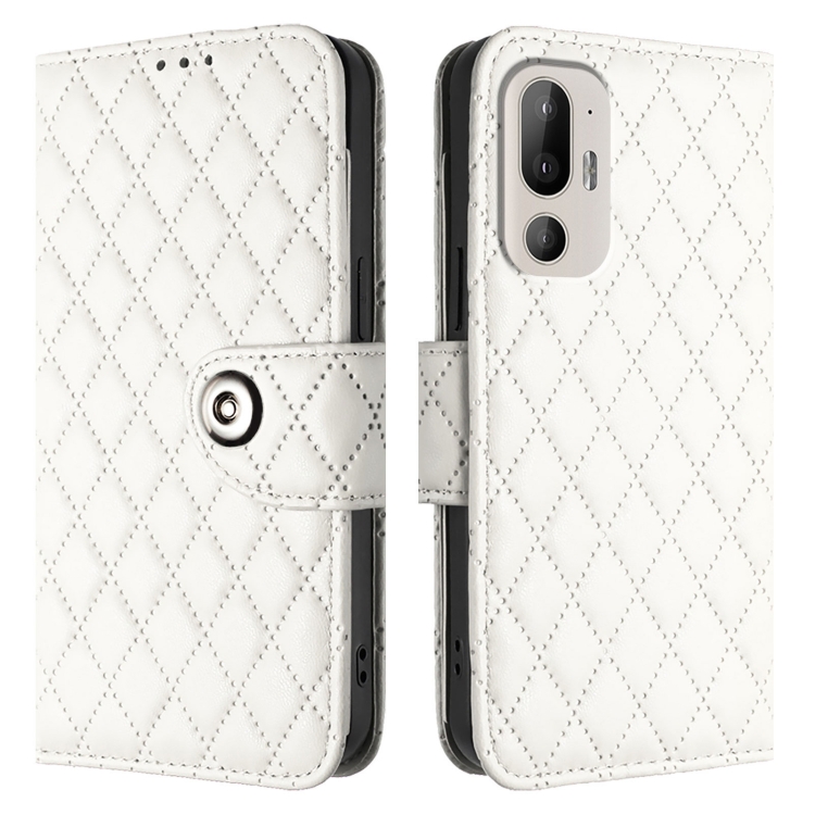 Funda de Cuero para HTC U24 Pro con Tapa, Textura Rómbica y Cordón (Blanco)