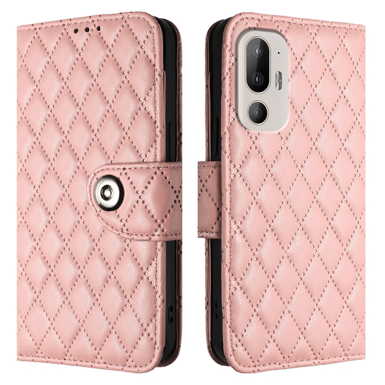 Funda de Cuero para HTC U24 Pro con Tapa Textura Rombal y Cordón (Rosa Coral)