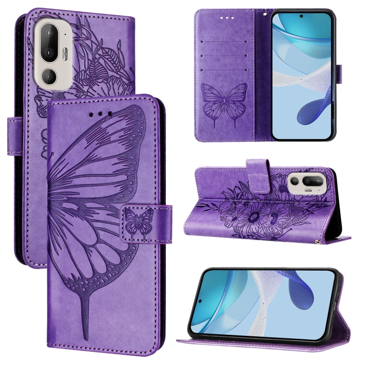 Funda de Cuero para HTC U24 Pro con Mariposa en Relieve (Púrpura)