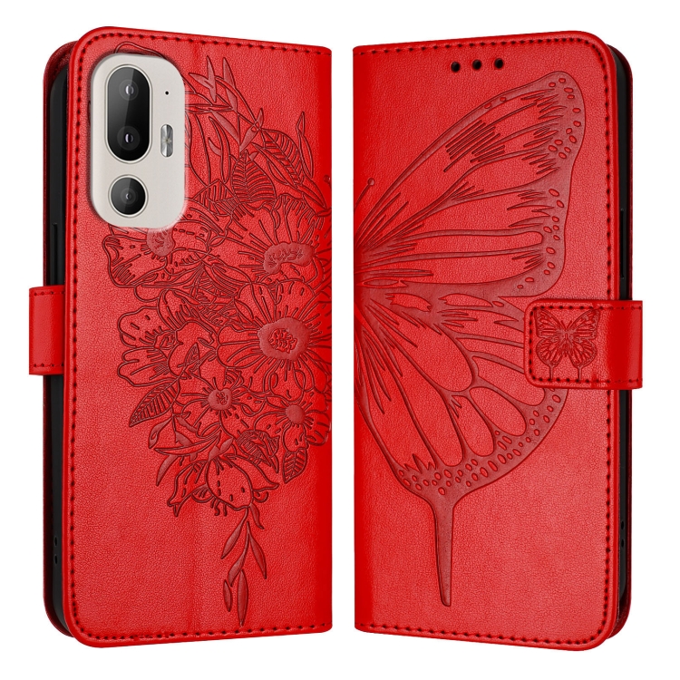 Funda de Cuero para HTC U24 Pro con Mariposa en Relieve (Rojo)