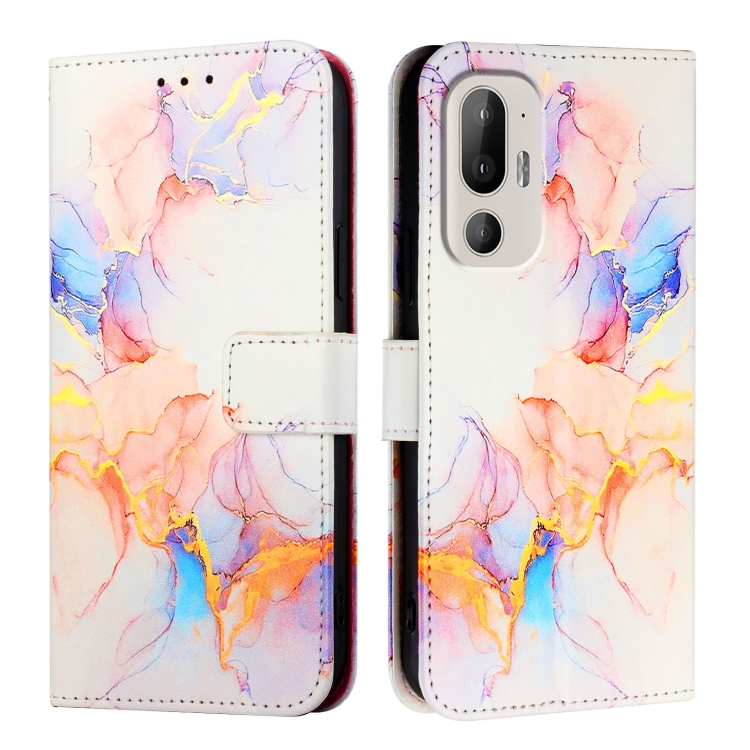Funda de Cuero para HTC U24 Pro Pt003 con Tapa y Patrón Mármol (Galaxy Marble White)