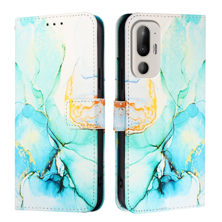 Funda de Cuero para HTC U24 Pro Pt003 con Tapa y Patrón de Mármol (Verde)