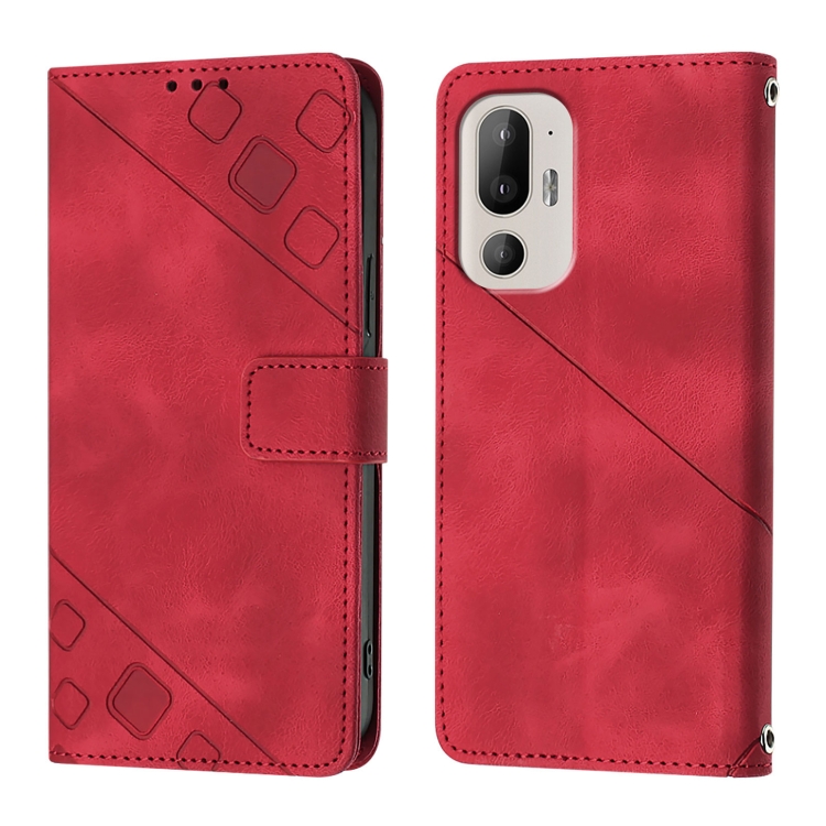 Funda de Cuero con Relieve para HTC U24 Pro Skin Feel (Rojo)
