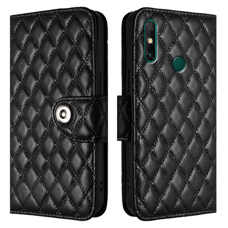 Funda para Huawei Enjoy 20 Se Y7A con Tapa de Cuero Textura Rómbica y Cordón (Negro)