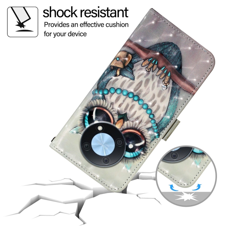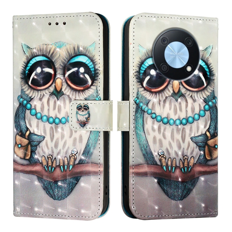 Funda de Cuero para Huawei Enjoy 50 Pro 4G y Nova Y90 con Tapa Horizontal y Pintura 3D (Búho Gris)