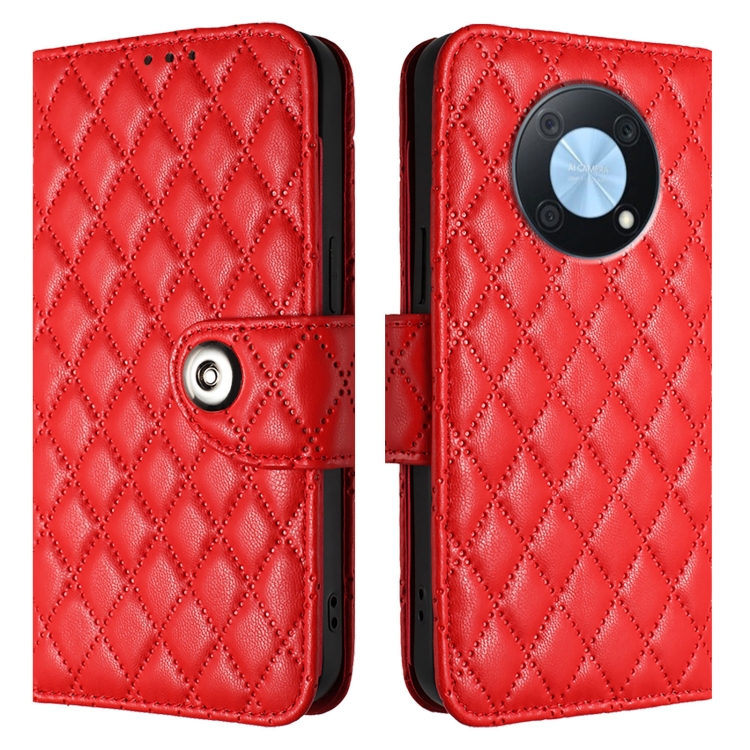 Funda para Huawei Enjoy 50 Pro / Nova Y90 con Tapa de Cuero Textura Rómbica y Cordón (Rojo)