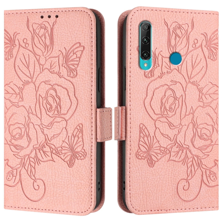 Funda de Cuero Antirrobo RFID para Huawei Enjoy 9S 4G y P Smart 2019 con Relieve (Rosa)