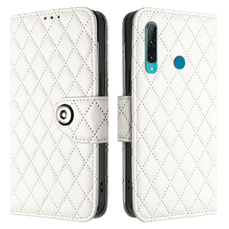 Funda para Huawei Enjoy 9S / P Smart + 2019 con Tapa de Cuero Textura Rómbica y Cordón (Blanco)