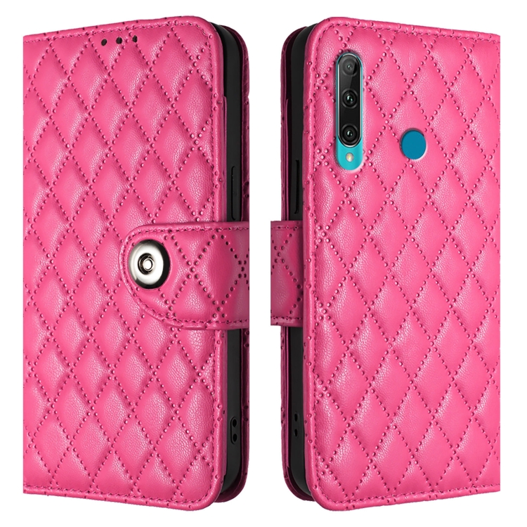 Funda para Huawei Enjoy 9S / P Smart + (2019) con Tapa de Cuero Textura Rómbica y Cordón (Rojo Rosa)