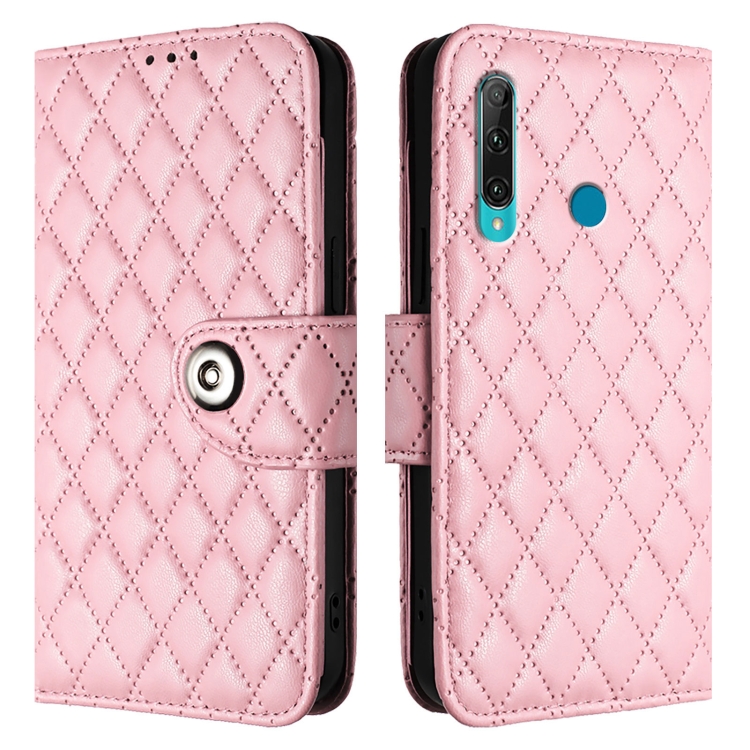 Funda para Huawei Enjoy 9S / P Smart+ (2019) de Cuero con Tapa Textura Rómbica y Cordón (Rosa)