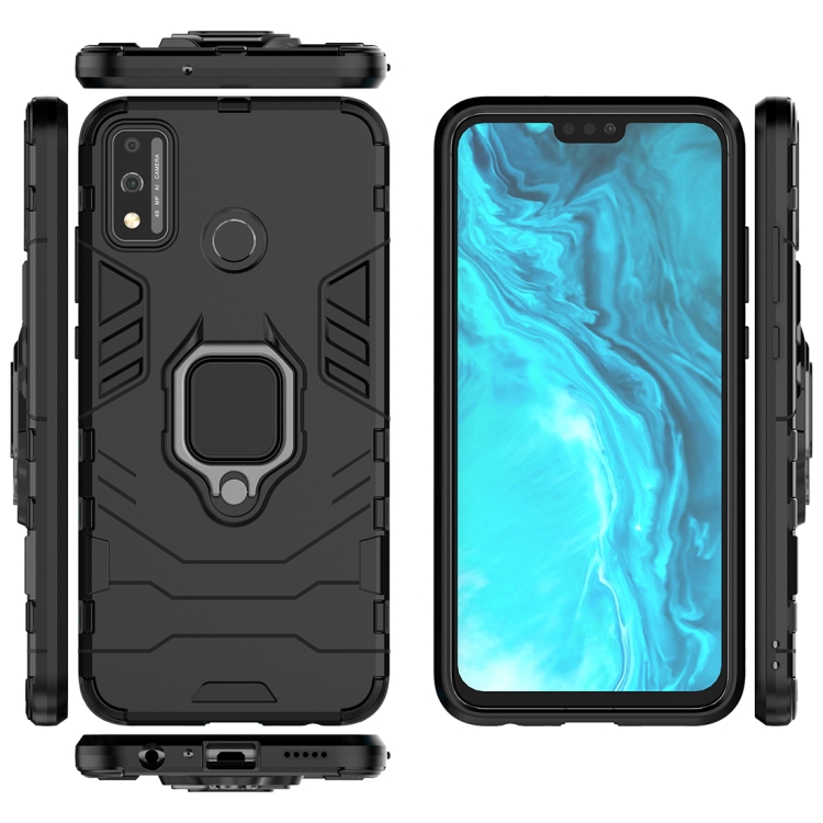 Para Huawei Honor 9X Lite Funda protectora PC + TPU a prueba de golpes con soporte para anillo magnético (Negro)
