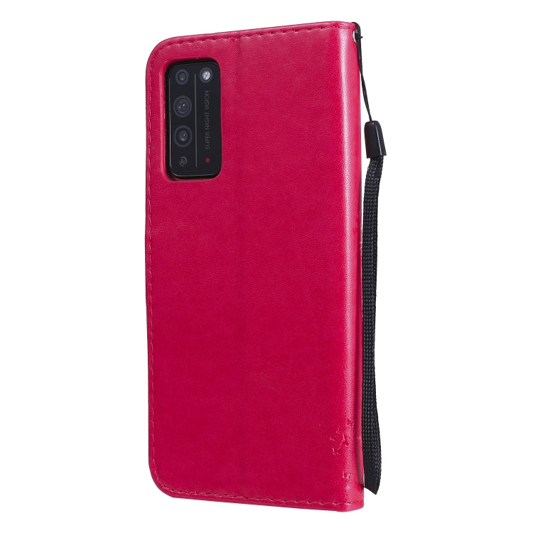 Funda de Cuero para Huawei Honor X10 5G con Patrón Árbol y Gato, Tapa Horizontal, Soporte, Ranuras y Cordón (Rosa Roja)