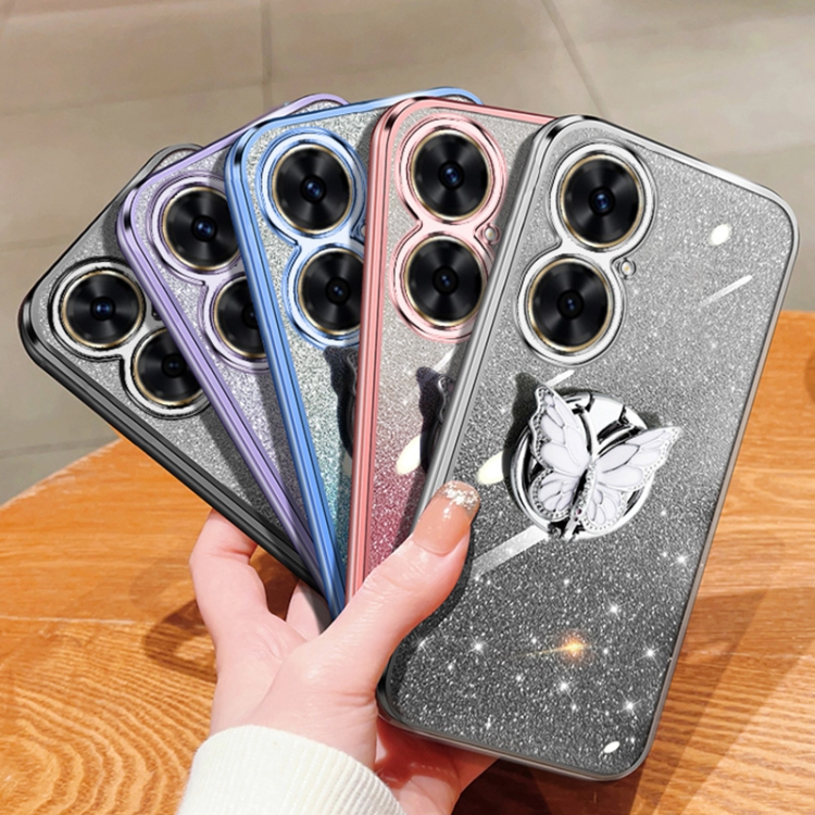 La Funda TPU para Huawei Maimang 20 con Soporte mariposa y brillo degradado en color Púrpura es un Accesorio diseñado para proporcionar protección integral y funcionalidad Adicional al dispositivo Huawei Maimang 20. Fabricada en material TPU resistente al desgaste, esta Funda ofrece una defensa eficaz contra arañazos, suciedad, y desgaste cotidiano, manteniendo el equipo en óptimas condiciones. Además, incorpora un Soporte tipo mariposa que facilita el uso manos libres para videollamadas, lectura o visualización de contenido multimedia, mejorando la comodidad y la productividad del usuario. Su diseño ligero y compacto permite una instalación y remoción sencilla, mientras que los recortes precisos garantizan el acceso sin restricciones a todos los Botones, Puertos y funciones del Teléfono.