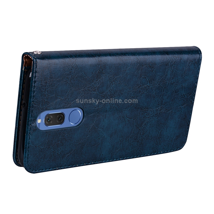Funda de Cuero para Huawei Mate 10 Lite y Nova 2I con Tapa Horizontal, Soporte y Ranuras (Azul)