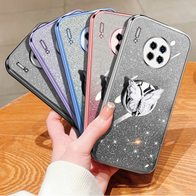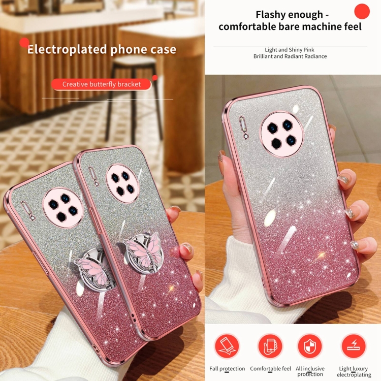 Funda para Huawei Mate 30 de TPU con Soporte Mariposa y Brillo Degradado (Plata)