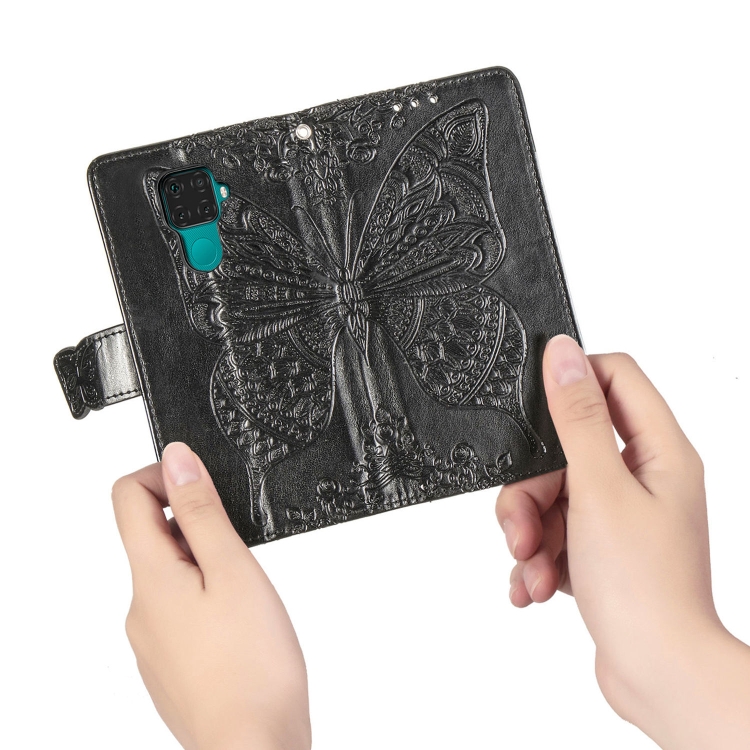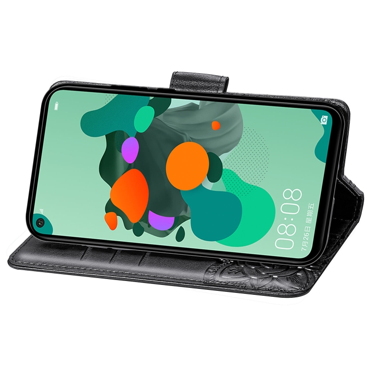 Funda de Cuero Huawei Mate 30 Lite Nova 5I Pro con Tapa Horizontal, Soporte, Ranuras y Cordón (Negro)