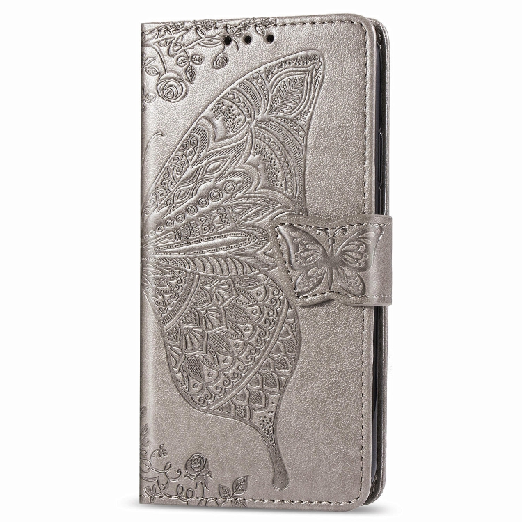 Funda de Cuero Huawei Mate 30 Pro Butterfly Love Flower con Soporte, Ranura y Cordón (Gris)