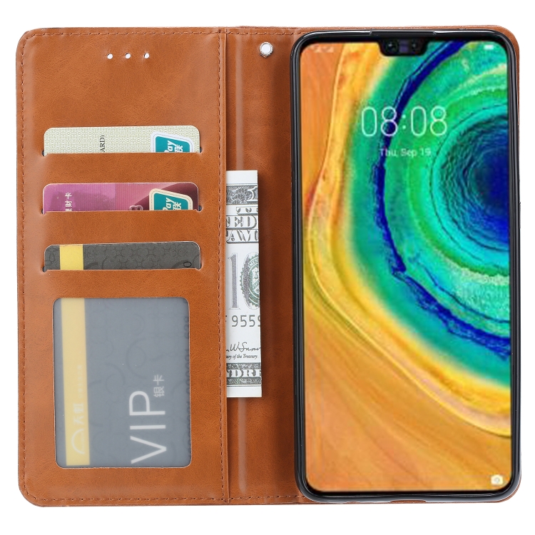 Funda de Cuero para Huawei Mate 30 Pro con Tapa Horizontal, Soporte, Marco de Fotos y Ranuras para Tarjetas (Marrón)