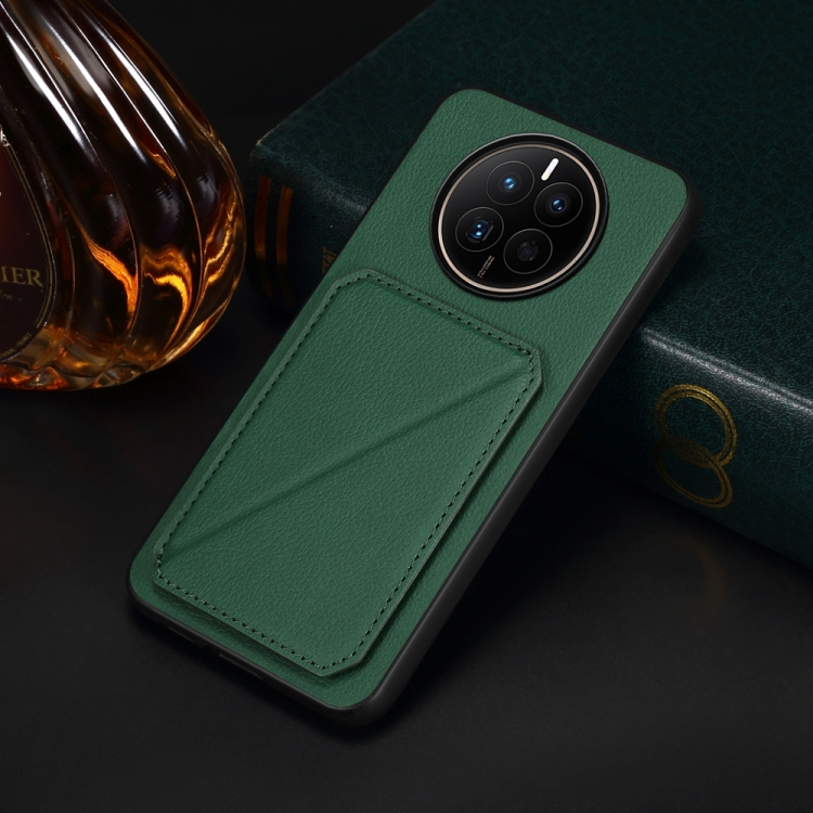 Funda para Huawei Mate 50 D04 con Ranura para Tarjeta Dual y Textura de Becerro (Verde)