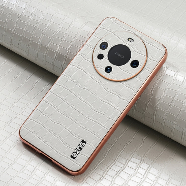 - 1x Estuche para Huawei Mate 60 Azns con textura de cocodrilo y Marco galvanizado (Blanco)