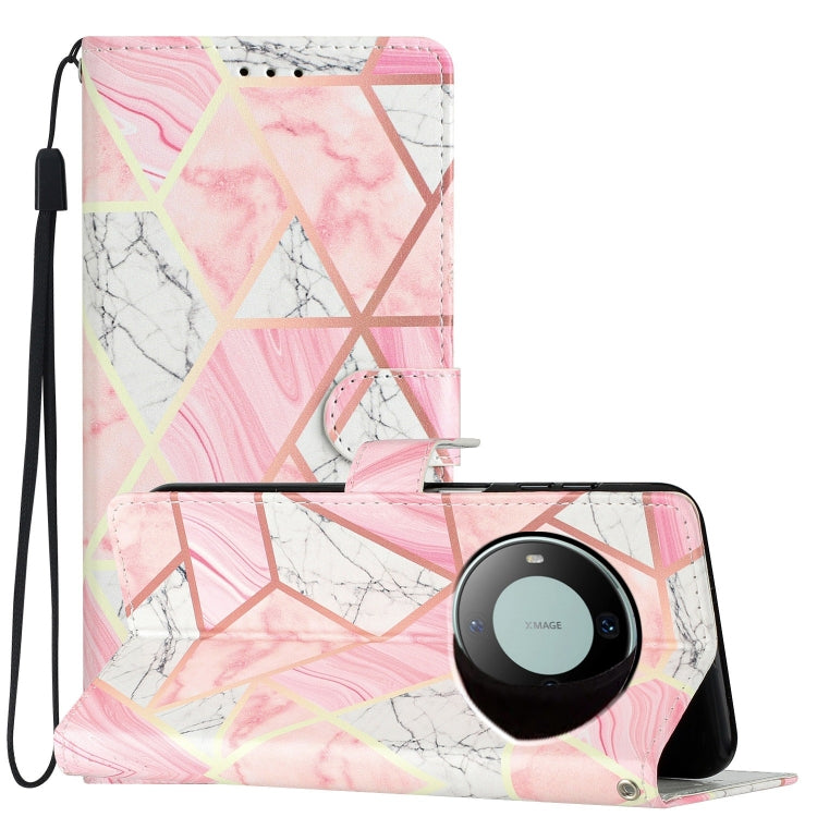 Funda de Cuero para Huawei Mate 60 con Dibujo Coloreado Mármol Rosa